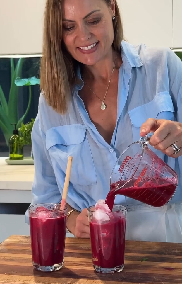Juice watermelon and beetroot. Stir in strawberry puree and mint leaves.
